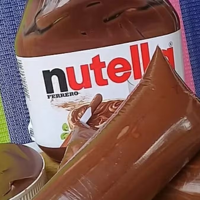 Sacolé cremoso de leite Ninho Nestlé com uma cobertura de Nutella Original.