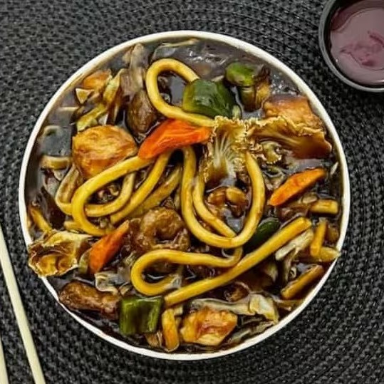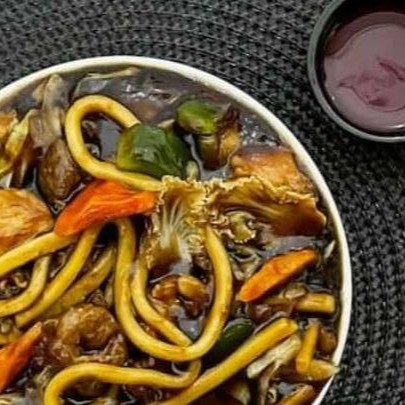 Nosso maravilhoso yakisoba e composto por macarrao carne ,camarao e legumes ao dente com nosso molho shoyu exclusivo