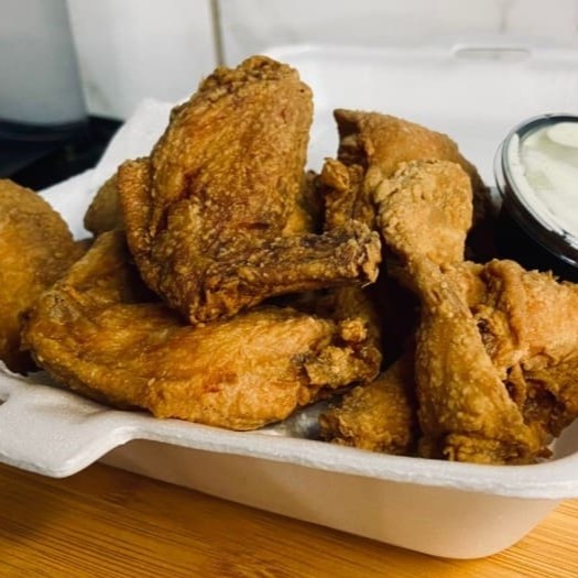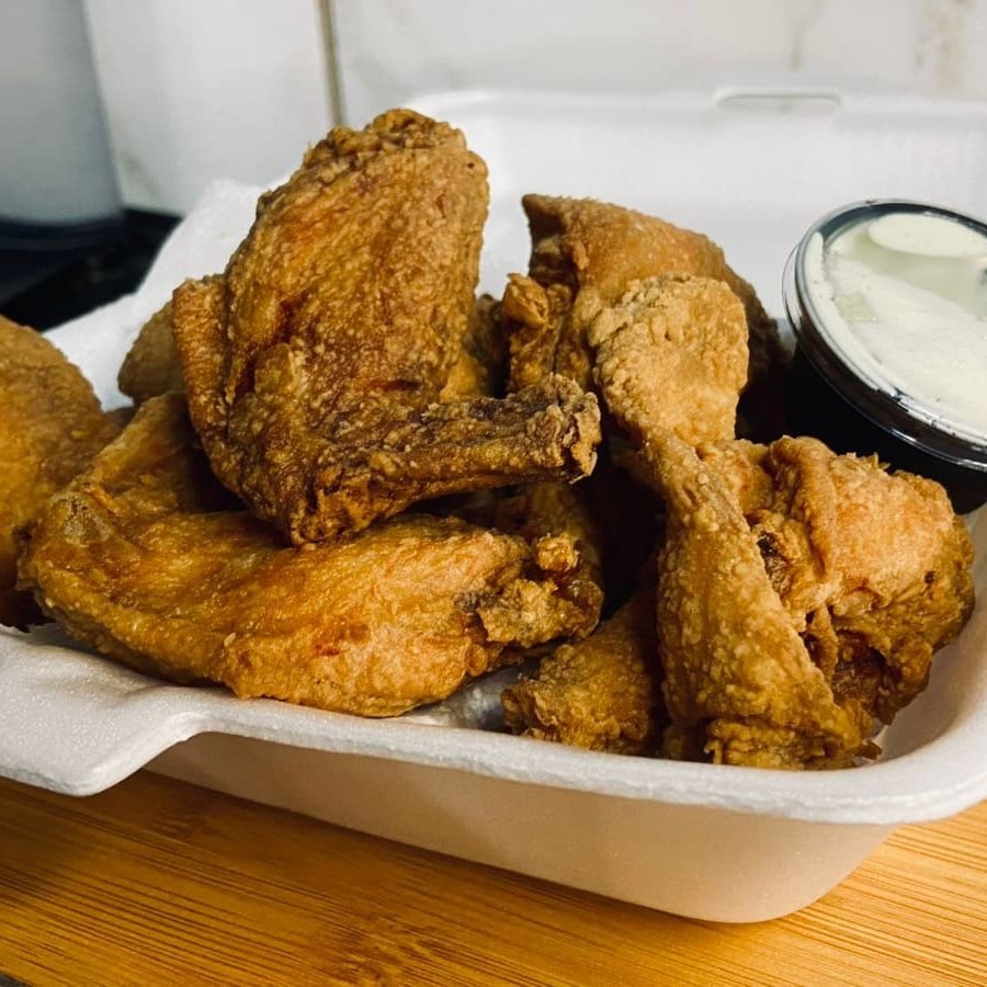5 asinhas crocantes acompanhada de molho de bacon