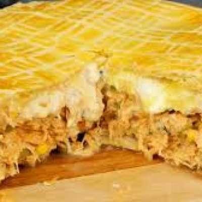 Empadão caseiro com recheio cremoso de frango, requeijão e massa leve.