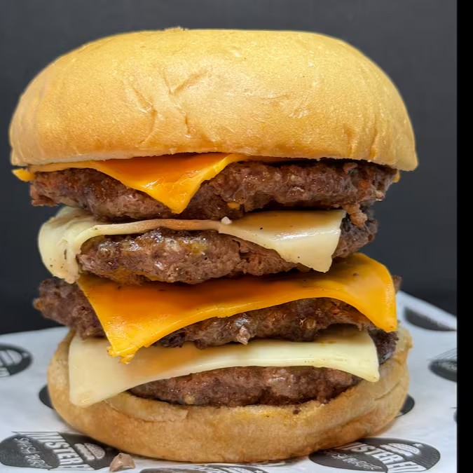 (pão brioche com mix de gergelim,4 blends de 100g (40g),2x queijo cheddar,2x queijo mussarela e molho especial)