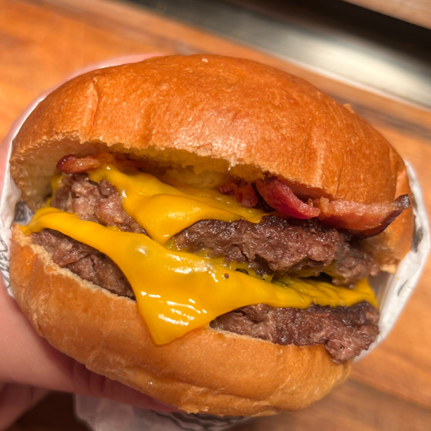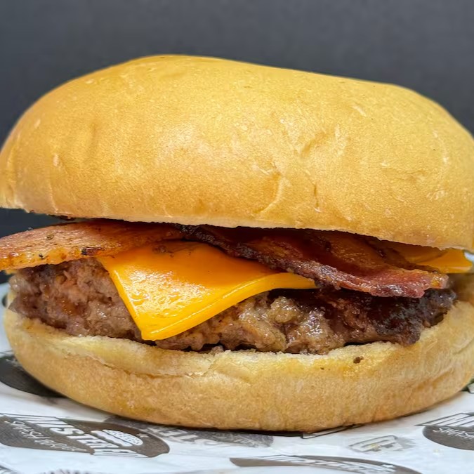 Pão premium, 2 blends de carne, 2 fatias de queijo cheddar, bacon e molho especial