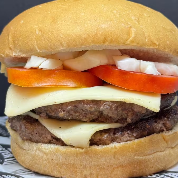 (pão de brioche com mix de gergelim,2 blends bovinos de 100g cada (200g),2 fatias queijo , tomate,Repolho crocante americana e molho especial)