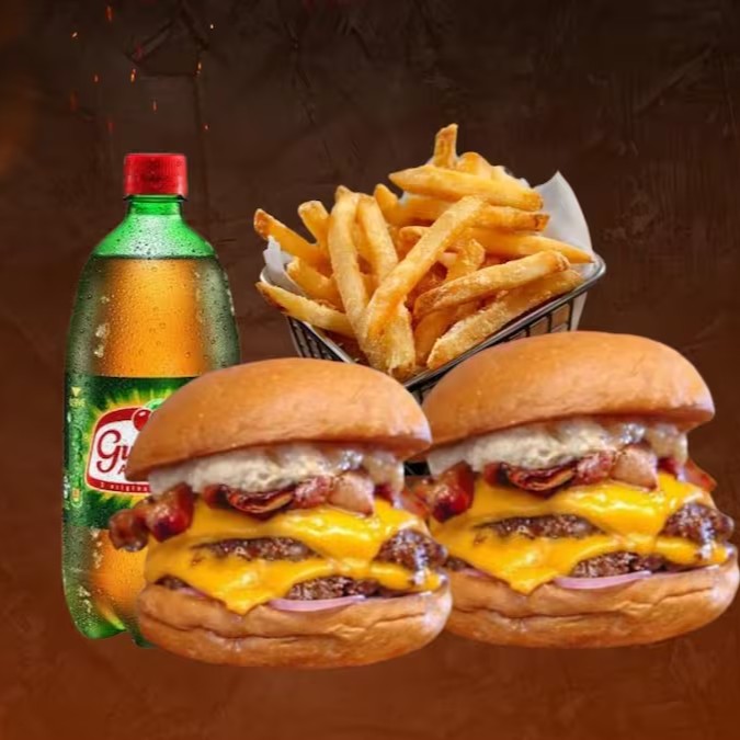 Delicie-se com nossa incrível promoção! Seu pedido inclui dois irresistíveis smashes duplos, repletos de sabor e qualidade. Além disso, acompanha uma porção individual de batatas crocantes e douradas, perfeitas para complementar essa experiência gastronômica. Como se não bastasse, você ainda recebe um refrescante litro de Antártica totalmente grátis! Tudo isso cuidadosamente preparado para levar até você a melhor experiência em fast-food. Aproveite!
