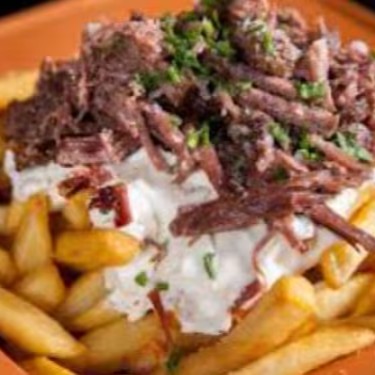 Batata extras finas sequinhas e gostosa temperada com rubs , coberta com cream cheese e costela desfiada
