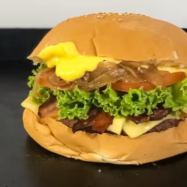 Pão Monstro, Hambúrguer Artesanal De 140g , Queijo Cheddar , Bacon, Alface, Tomate, Cebola Caramelizada, Maionese Amarela ou Creme De Milho.