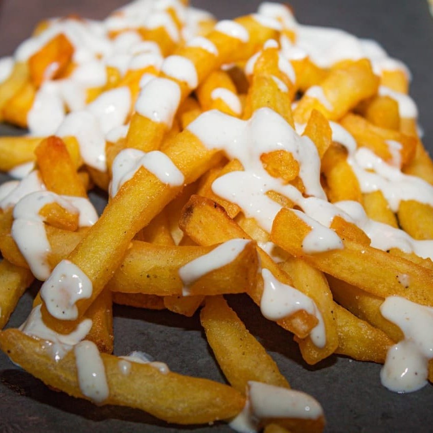 Clássica batata frita sequinha e crocante, acompanhadas com maionese de tofu com alho e orégano. Aprox. 150g| Sem glúten intencional.