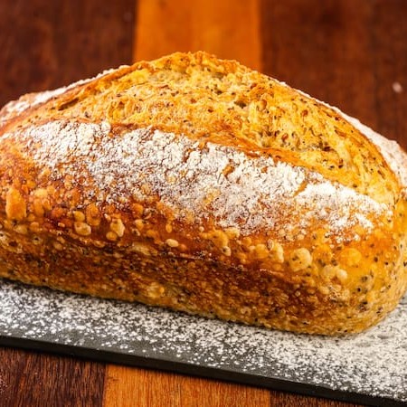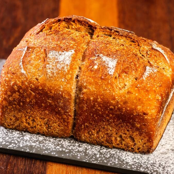 Feito com um blend de farinhas orgânicas, linhaça dourada, gergelim branco, água, sal, açúcar mascavo e fermentação natural (levain). Um pão rústico, nutritivo e cheio de sabor, com textura densa e aroma marcante. Perfeito para quem valoriza saúde, qualidade e autenticidade em cada fatia.