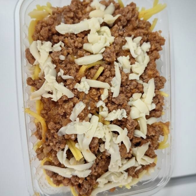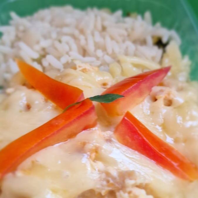 Espaguete de arroz sem glúten com carne moída bem temperada com ervas e temperos naturais, finalizado com mussarela derretida bem cremosa. Leve, saboroso e super aconchegante.