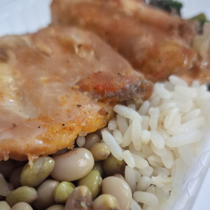 Frango Assado Com Arroz, Couve Refogada E Feijao Verde - Sem Glúten E Sem Lactose