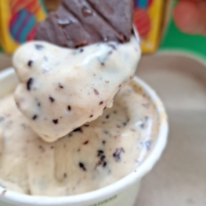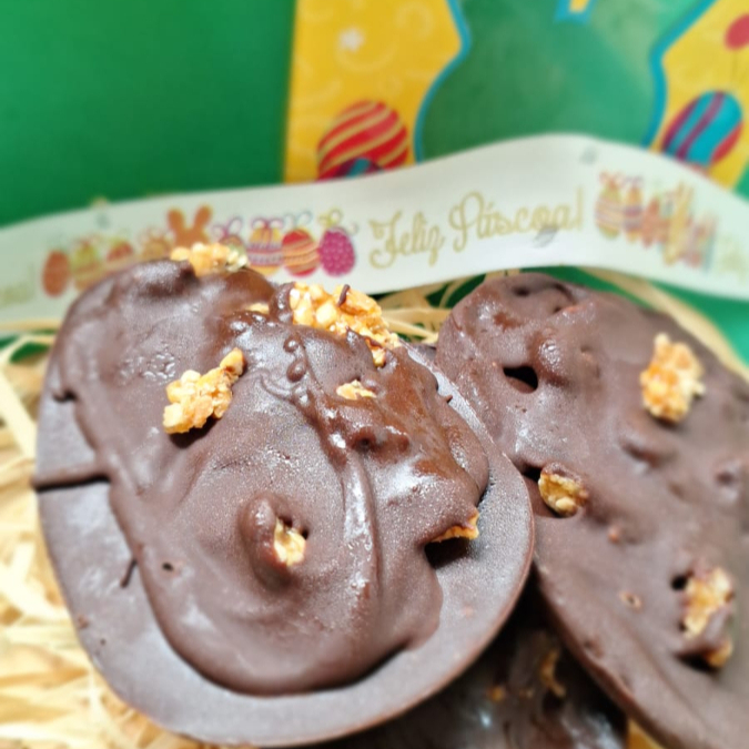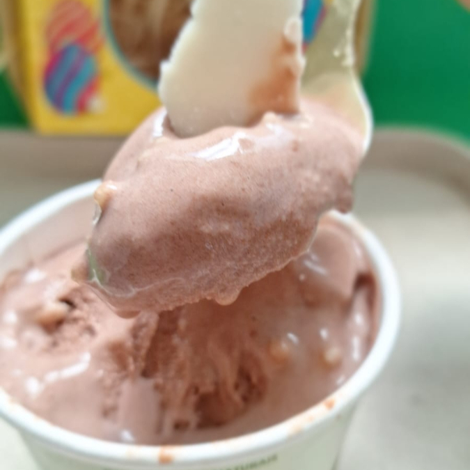 Cobertura de chocolate crocante com recheio de sorvete cremoso zero açúcar e zero glúten