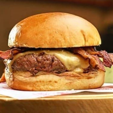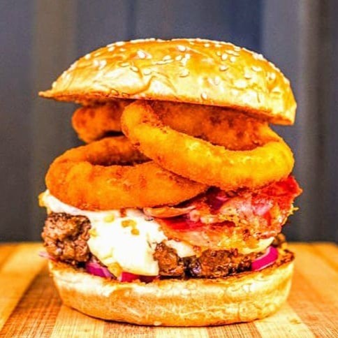 Saboroso Burguer com carne angus de 150g coberto com queijo mussarela Original derretido, bacon em cubos coberto com creme Chesse, onion rings no nosso pão brioche selado na manteiga e molho a sua escolha.