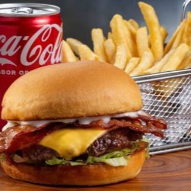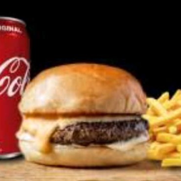 Contém 1 hambúrguer ( carne artesanal 100g ,molho especial da casa, queijo mussarela derretido) 1 Coca-Cola Original 350ml 1 Batata frita P