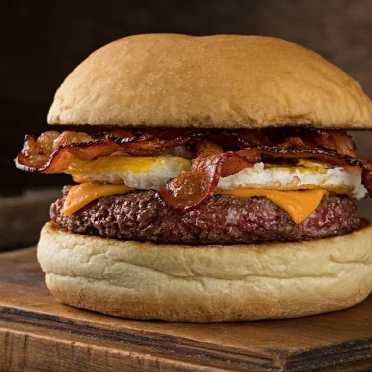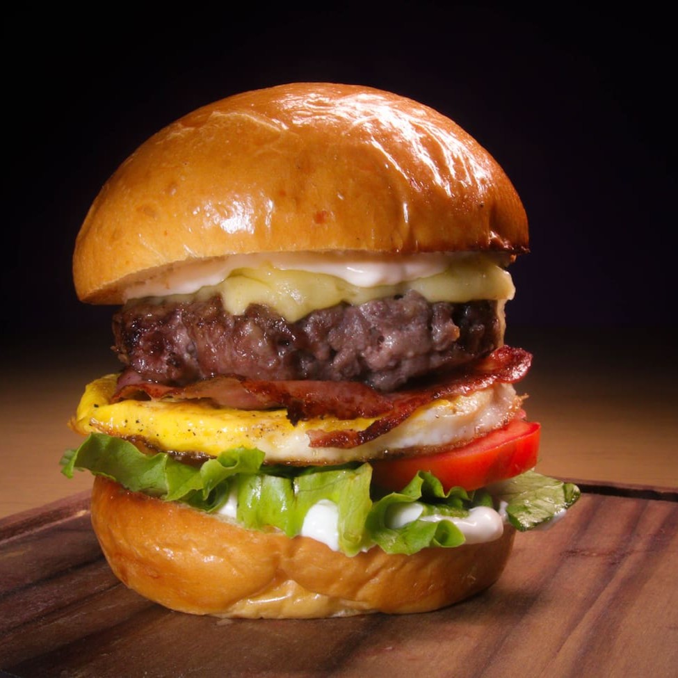 Burguer com 150g de carne angus com queijo mussarela Original derretido, ovo frito na chapa, finas tiras de bacon crocante, salada fresquinha (alface, tomate e finas tiras de cebola) no nosso pão brioche selado na manteiga e molho especial de churrasco.