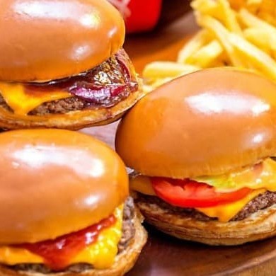5 mini hambúrguer artesanal, pão de 6cm, carne 100%bovina 35g, queijo mussarela, molho especial de churrasco, bacon em cubos e porção de batata média.