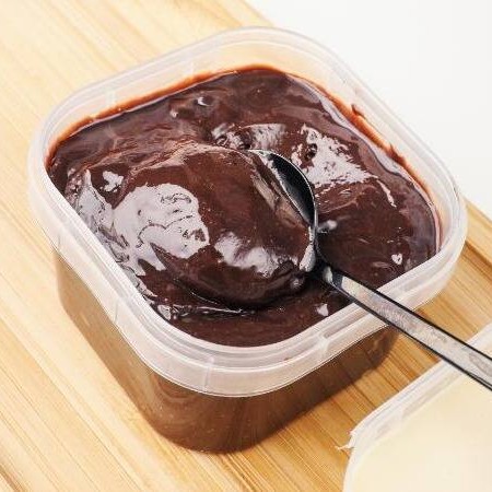 32kcal. Creme de biomassa de banana, cacau 100%, mel, manteiga ghee e granulado sem lactose. Sem glúten e sem lactose.