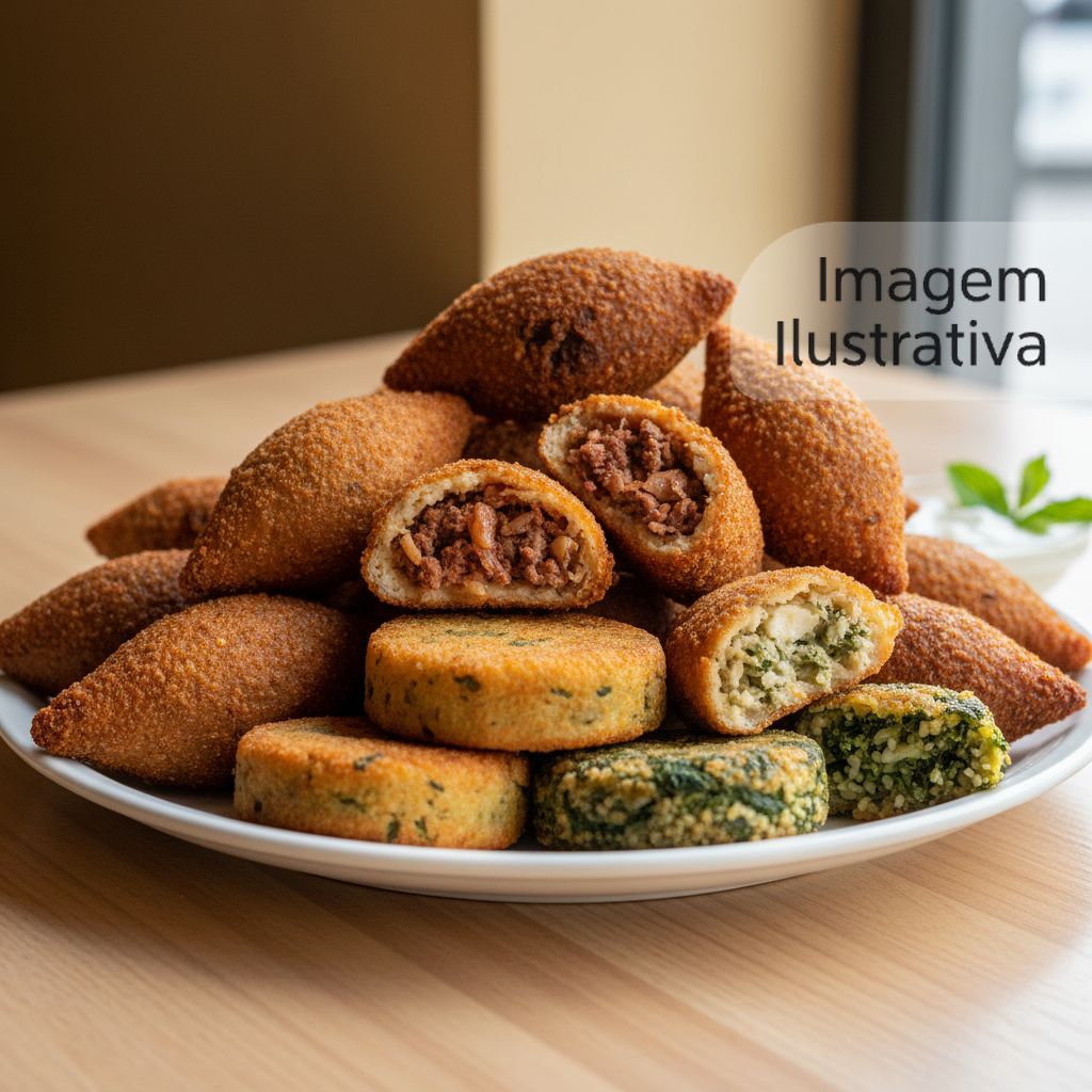 Um combo especial com quibe de carne e bolinho de queijo, perfeito para compartilhar.