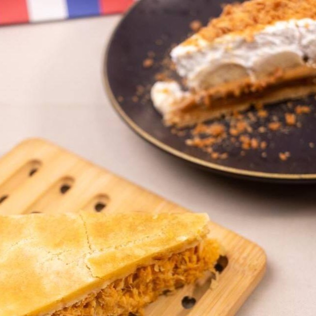A banoffee Original que conquistou Recife! Feita com massa crocante de biscoito (receita secreta), doce de leite caseiro e cremoso, fatias frescas de banana, chantilly leve e finalizada com um irresistível crocante de caramelo salgado. Uma experiência digna da realeza — e perfeita para uma indulgência individual.