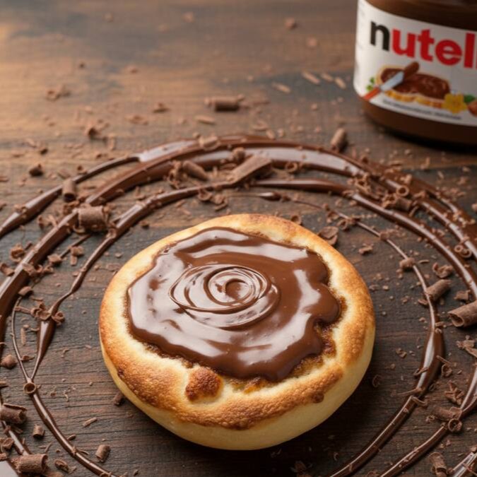 Nutella cremosa derretendo sobre nossa massa macia e douradinha.