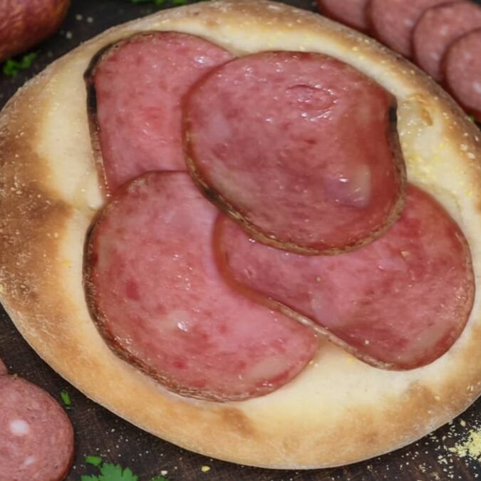 Calabresa em rodelas, suculenta e cheia de Sabor.