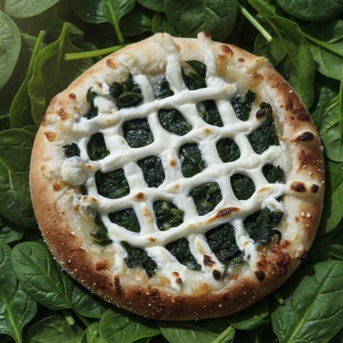 Esfiha de espinafre um classicom que inclui folhas de espinafre refogdas com especiarias e cream chease.
