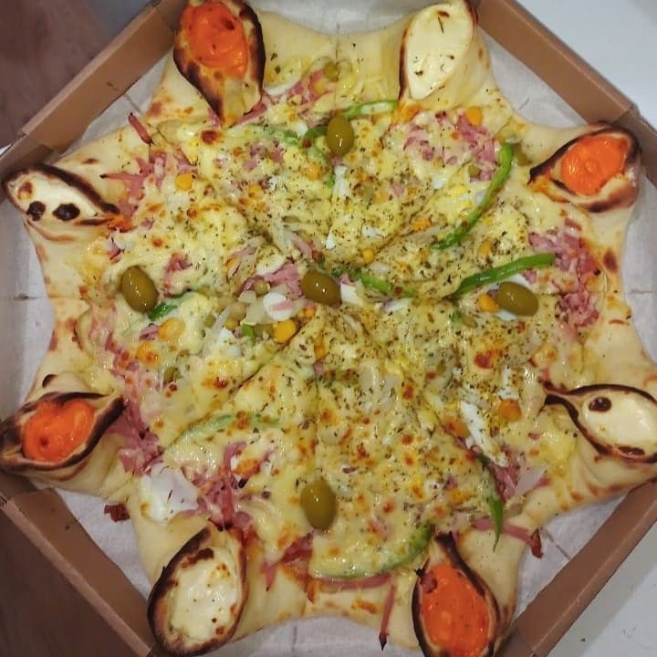 Massa especial borda vulcão molho de tomate artesanal mussarela presunto cebola ovos milho e ervilha...hummm, deu água na boca, né? Peça já a sua.