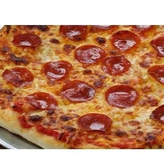 Massa, molho, mussarela, pepperoni, azeitona e orégano.