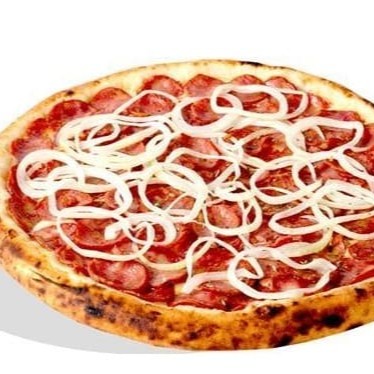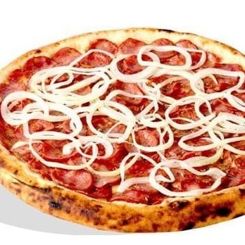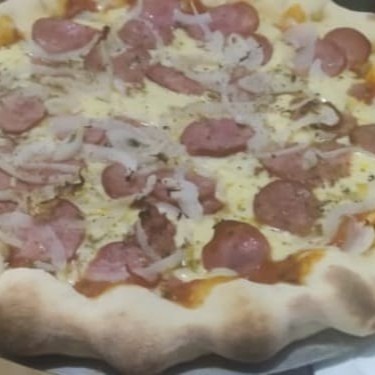 Massa, molho, mussarela, calabresa, cebola, orégano e azeitona.
