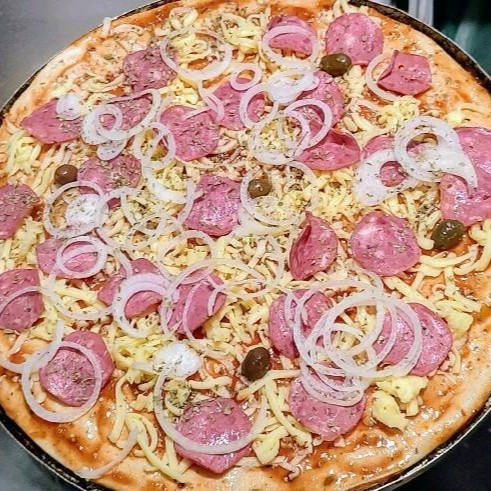 Molho de Tomate, Mussarela, Calabresa,Cebola, Azeitona e Orégano