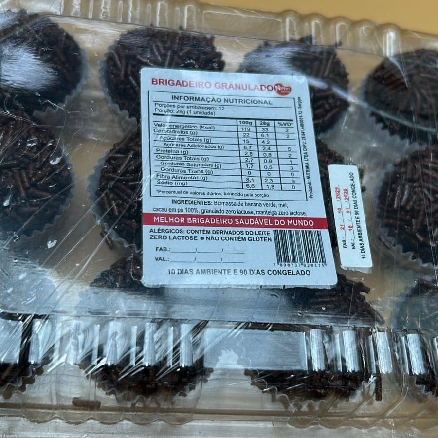 Ingredientes: Biomassa de banana verde, mel, cacau em pó 100%, granulado zero lactose, manteiga zero lactose. (Alérgicos: contém derivados do leite zero lactose, não contém glúten).