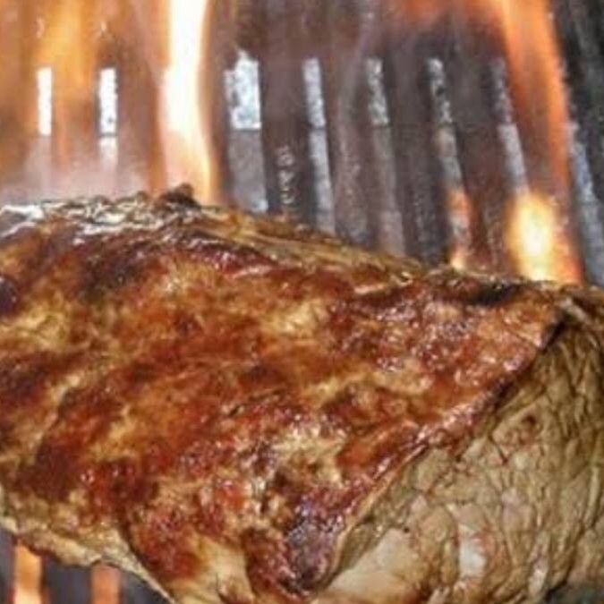Suculenta Carne de Sol assada na brasa e banhada em manteiga de garrafa, acompanha feijão, arroz, farofa e vinagrete.