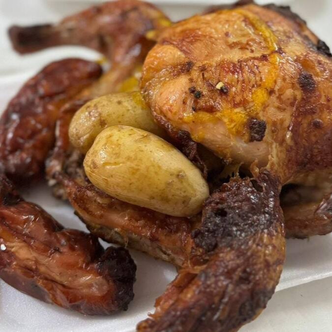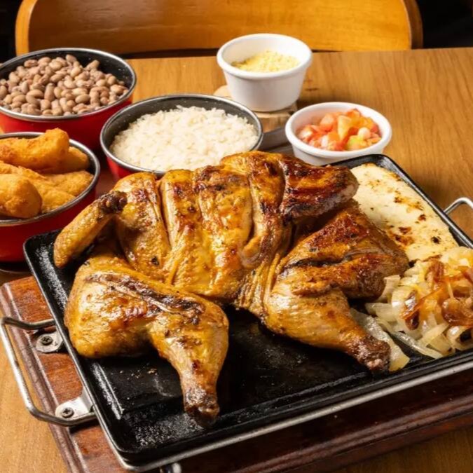 Um delicioso galeto assado, temperado com ervas finas e especiarias, servido vinagrete e farofa crocante manteiga de garrafa e queijo ralado. Uma verdadeira iguaria da culinária brasileira!