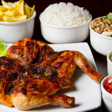 Acompanha feijão macassar, arroz refogado, vinagrete, farofa e uma porção de batata frita