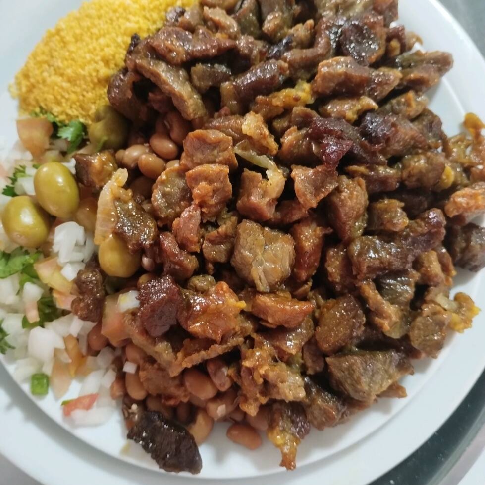 2 Opções De Carne (Carne de Sol e Charque) + Feijão Macaçar, Farofa E Vinagrete