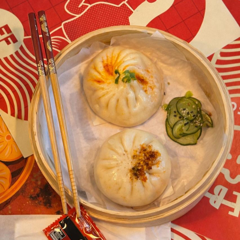 Caldo aromático de camarão, servido com ovo, frango, shitake, cenoura no óleo de gergelim e cebolinha
