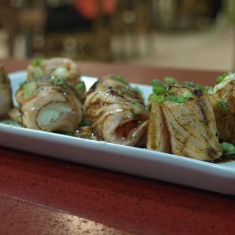 Recheio empanado com cream cheasse e molho teriyaki