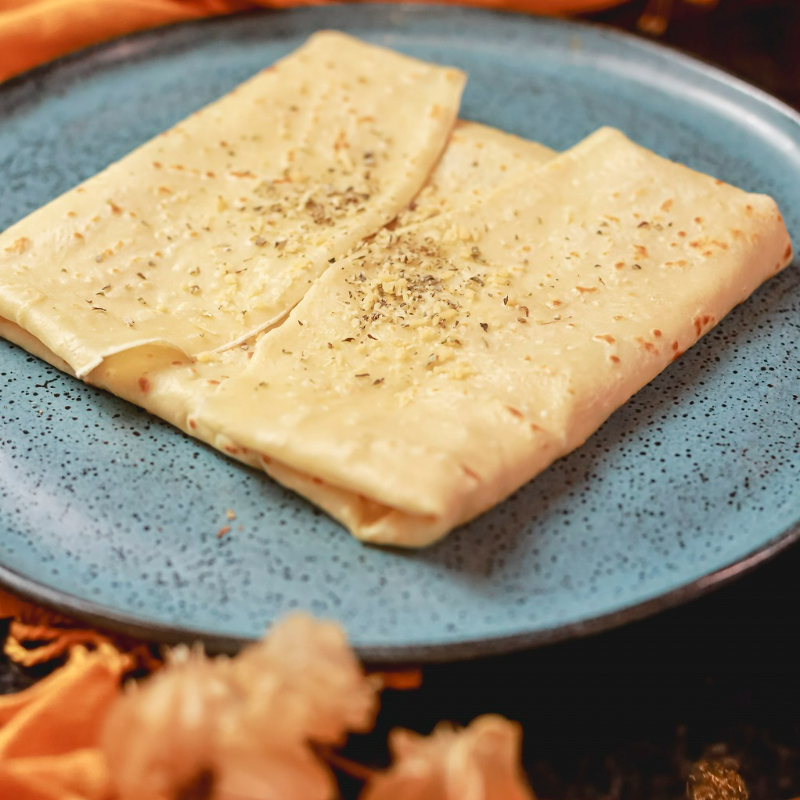 Charque desfiada, cebola refogada no azeite, catupiry, molho bechamel e parmesão. Acompanha torrada da casa.