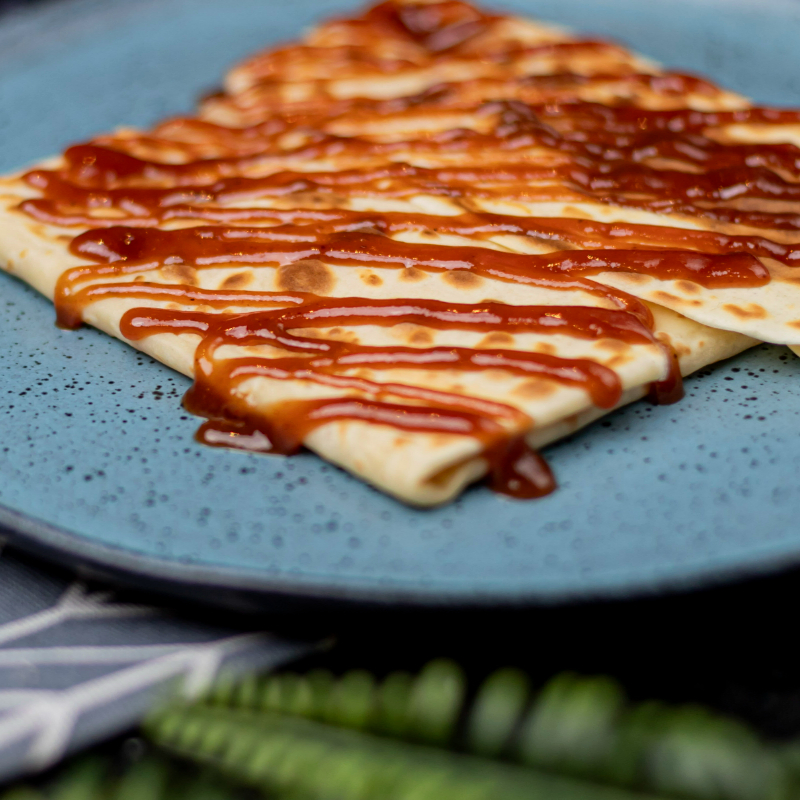 Frango defumado desfiado, molho de tomate, catupiry, molho bechamel e parmesão. Acompanha torrada da casa.
