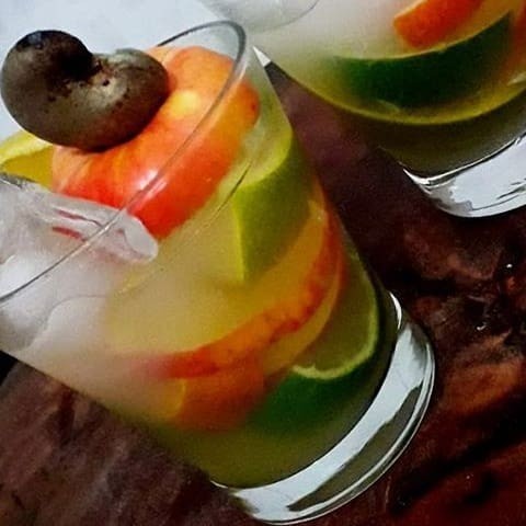 Caipirinha de Caju com limão macerados no açúcar com 2 duas doses cachaça.