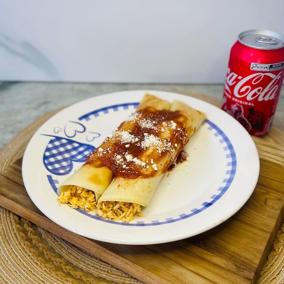 Deliciosa panqueca de frango, acompanhada de arroz branco, macarrão, feijão preto ou mulatinho. Tudo feito na hora para sua refeição chegar quentinha até você. + Coca