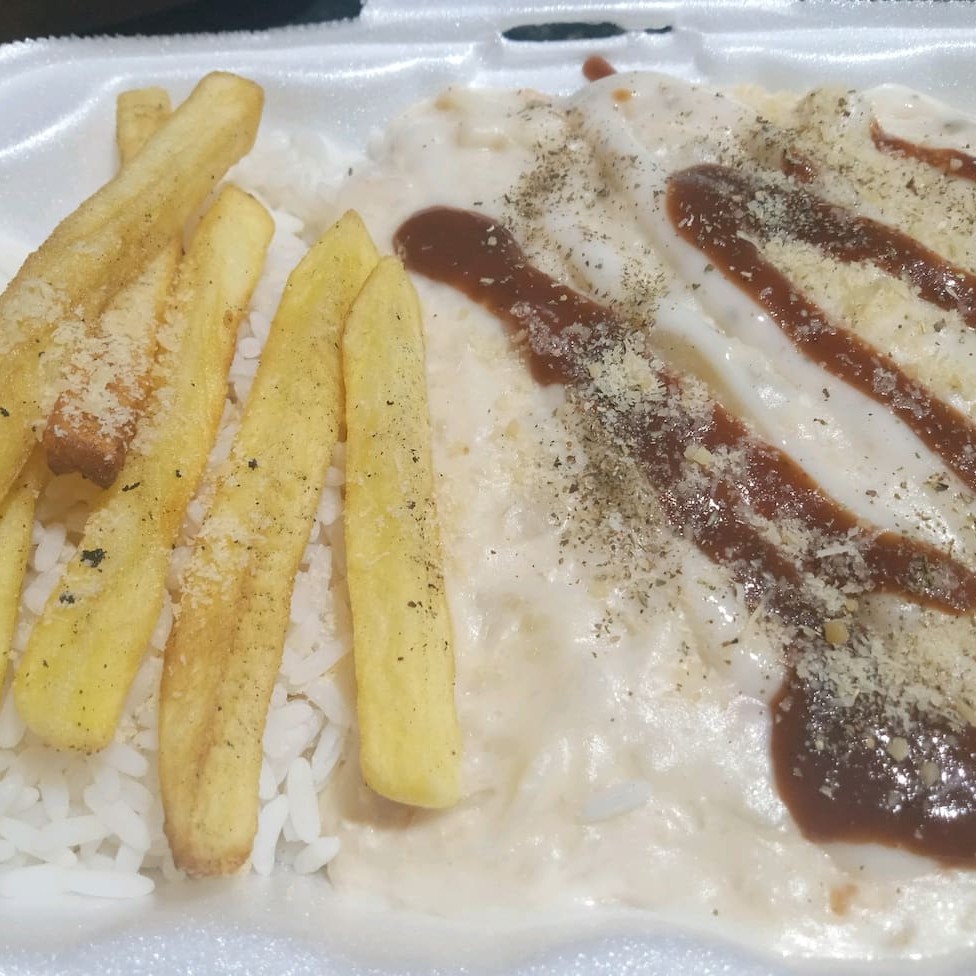 Arroz ou macarrão ,filé ao molho,batata frita ,orégano, barbecue