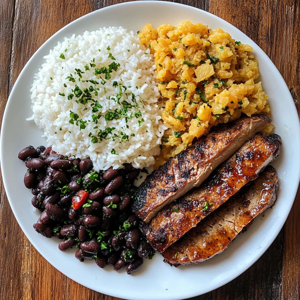 arroz, feijão, farofa da casa e maminha fatiada