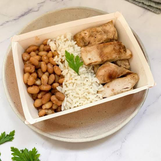 Arroz, Feijão,farofa e contra filé fatiado