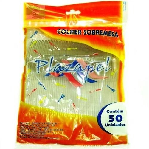 Colher Plástica Descartável Sobremesa Plazapel Embalagem 50 Un