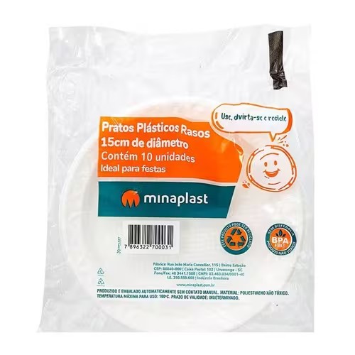 Prato 15cm 10un Branco Minaplast