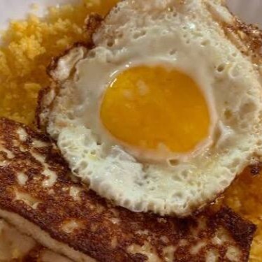 Cuscuz, 1 ovo frito e 1 fatia de queijo coalho assado, totalizando aprox 500g