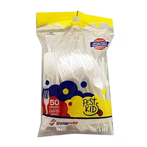 Garfo Plástico Strawplast Sobremesa Branco Embalagem 50un