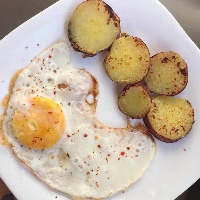 200gr batata doce + 2 ovos (fritos ou mexidos)