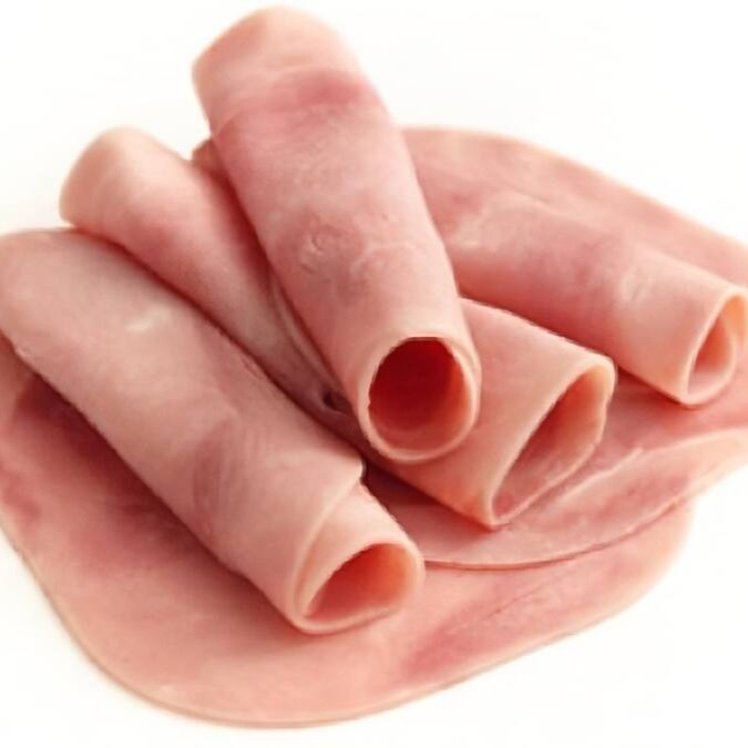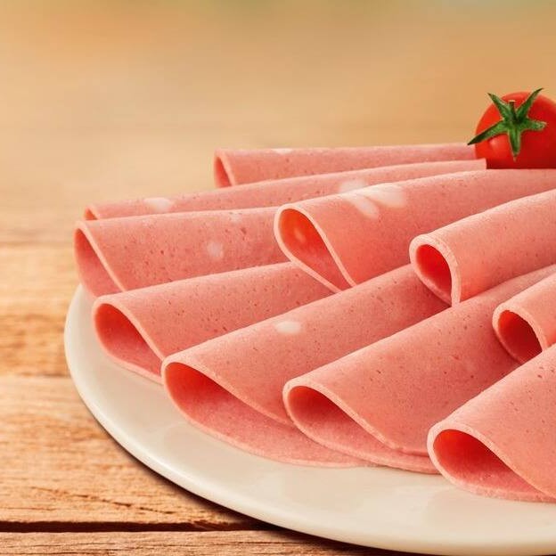 Mortadela fatiada.