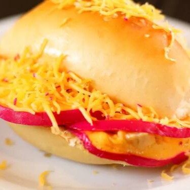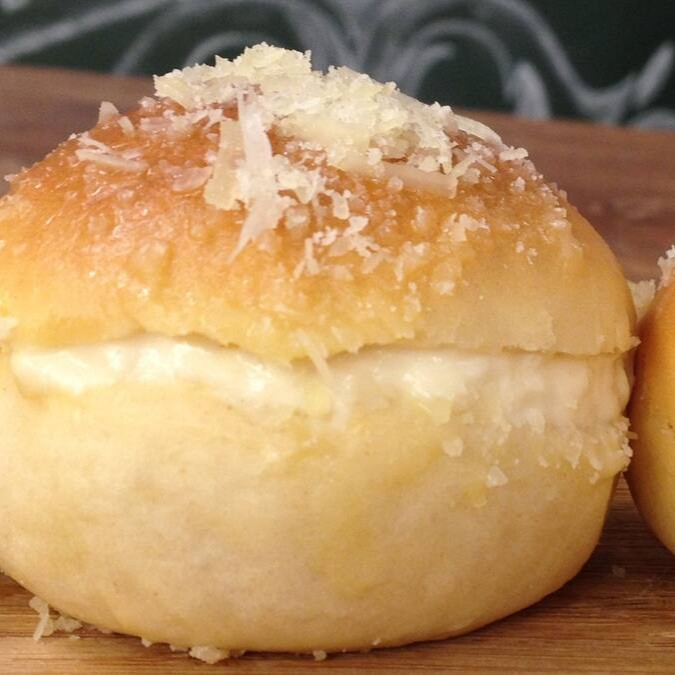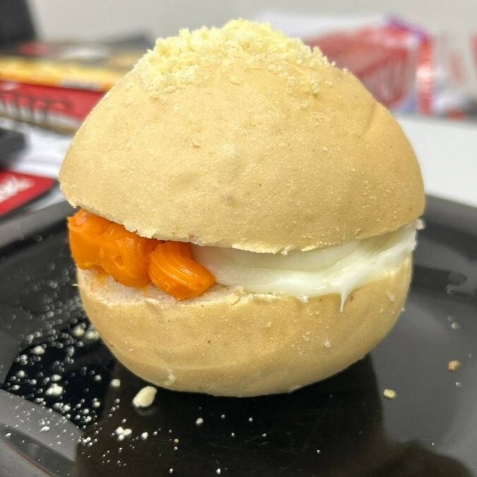 Pão delicia recheado com Catupiry e cheddar. Imagem ilustrativa.